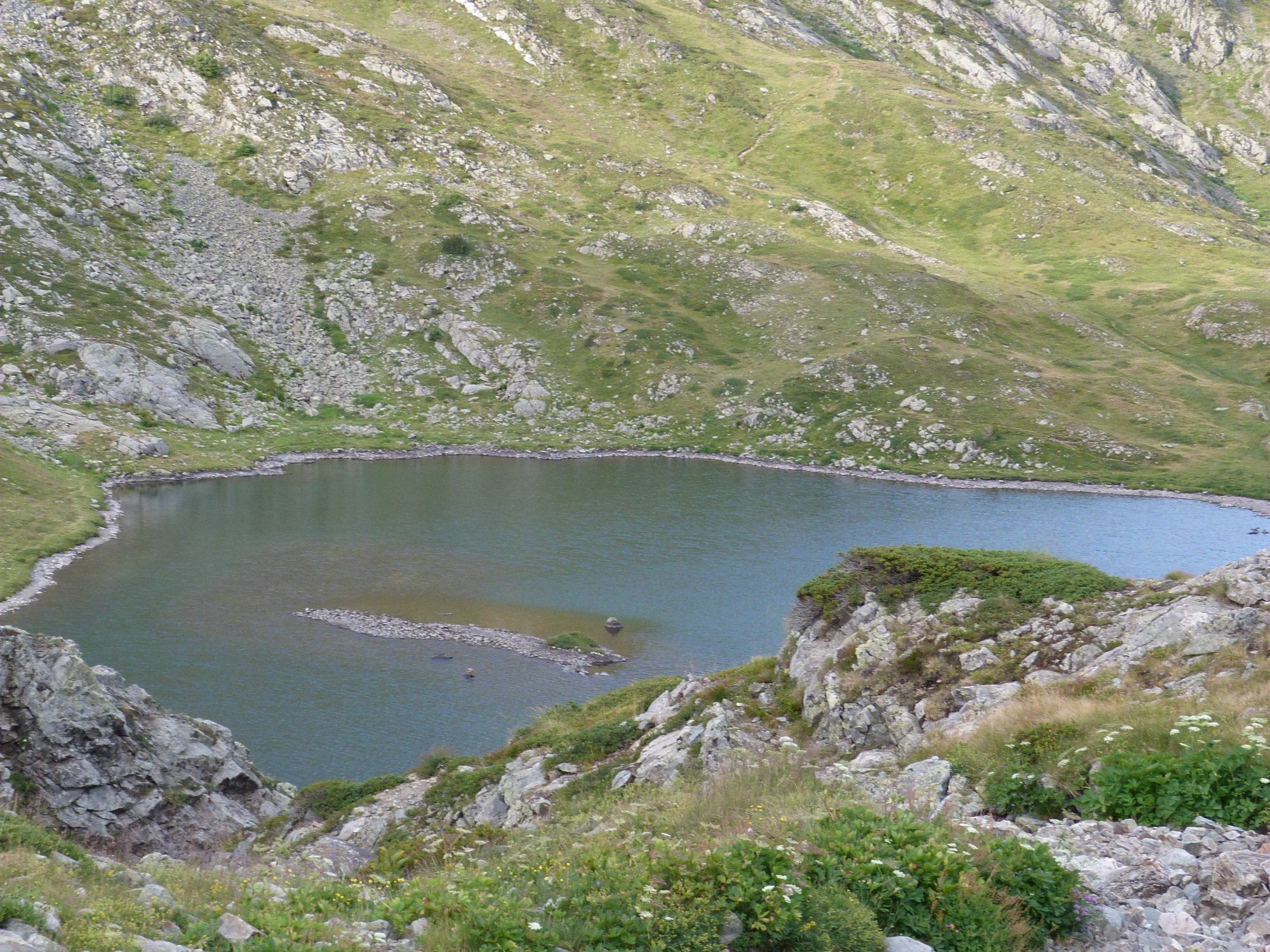 Après une montée un brin raide, on aperçoit le lac et son effluent, le Guiliman.