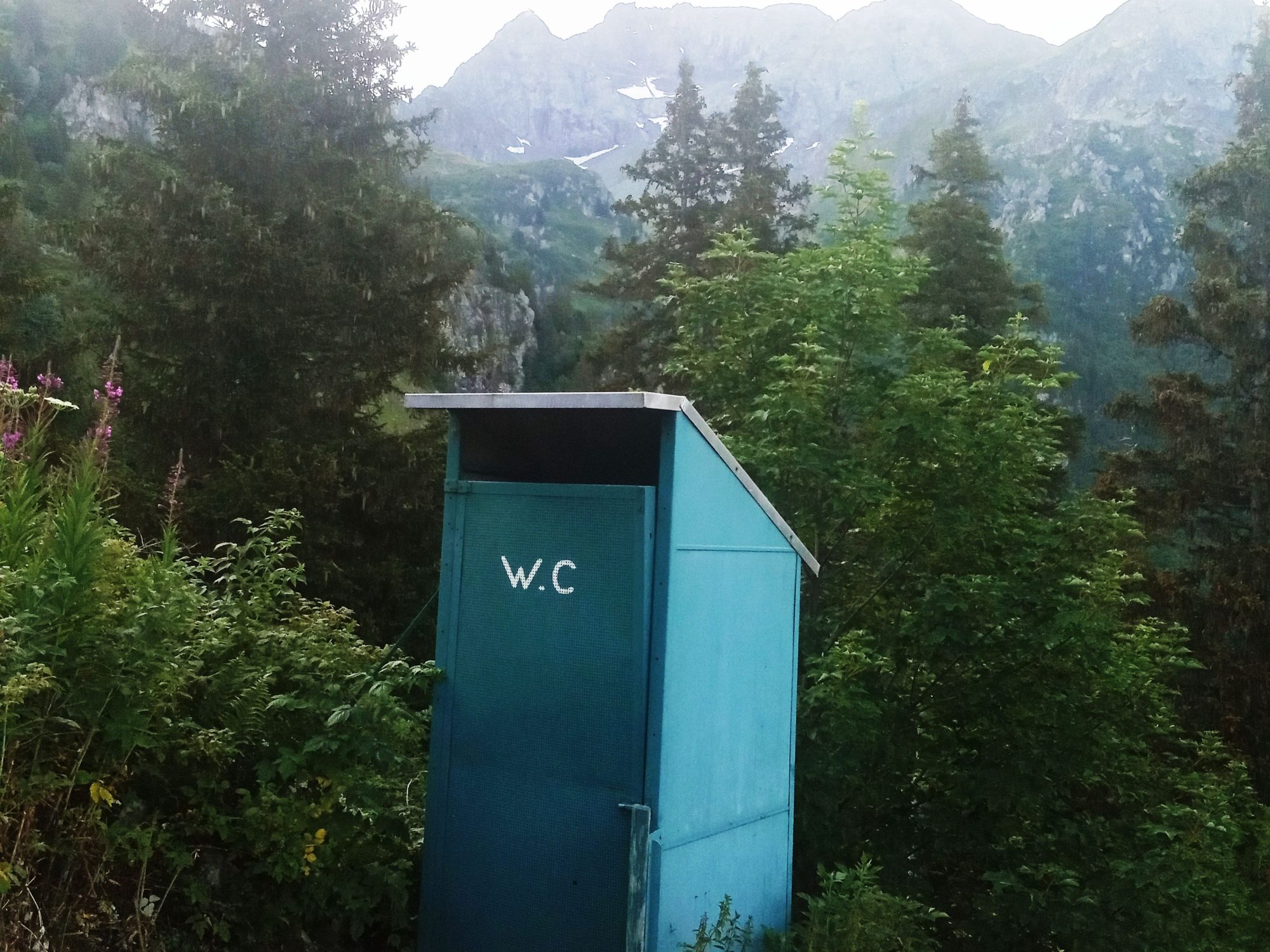 Concernant les refuges et plus rarement les cabanes non gardées, il y a le plus souvent des toilettes sèches ( la photo d’illustration : les (anciennes) toilettes du refuge du Pré Mollard, Belledonne).