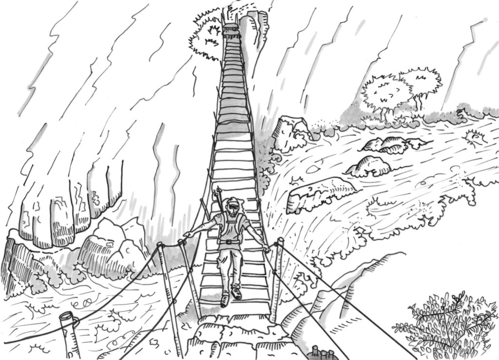 « Dessiner après une rando de plusieurs semaines sur la base de photos, de souvenirs ou de croquis réalisés sur le terrain permet de revivre toutes les émotions d’un trek à posteriori … C’est ainsi qu’après avoir réalisé plusieurs dessins de cette aventure, cela m’a donné envie d’écrire et de partager mes treks au travers de petits livrets illustrés. »