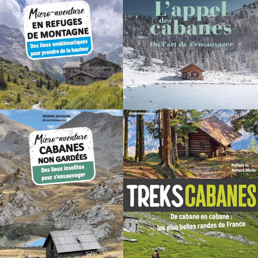 Grâce à cette communauté de passionnés, j’ai travaillé sur quatre livres qui ont pour objectif de préparer et de vous accompagner vers vos aventures en cabanes et/ou en refuges ( liens d’achat en bas de page).