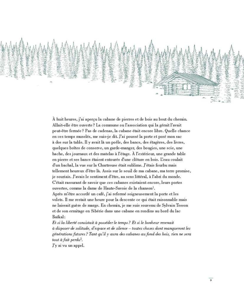Je vous invite, entre récit et essai, à vivre l’aventure de la cabane, du chemin pour s’y rendre jusqu’à la nostalgie de la quitter.